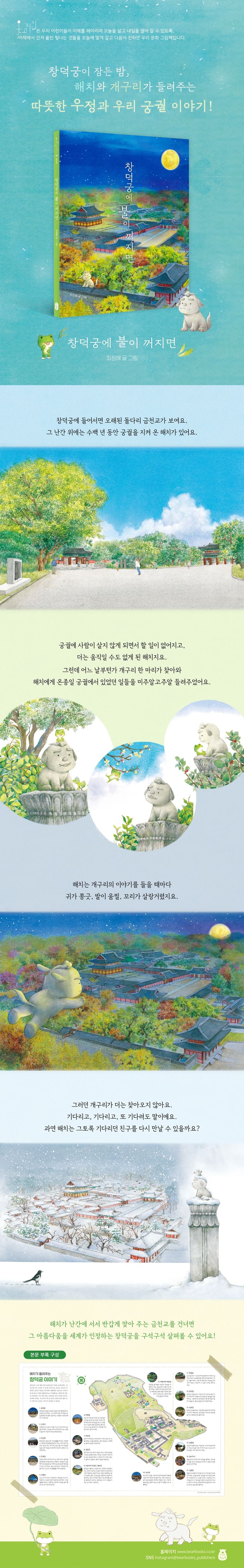 {"id":9053332242650,"title":"When darkness falls on Changdeokgung Palace Korean Edition","handle":"zoo-hardcover-korean-edition-by-suzy-lee-1","description":"\u003cp data-start=\"456\" data-end=\"544\"\u003e\u003cstrong data-start=\"456\" data-end=\"542\"\u003eWhen darkness falls on Changdeokgung Palace,\u003cbr data-start=\"502\" data-end=\"505\"\u003ethe time of Haechi and Frog begins.\u003c\/strong\u003e\u003c\/p\u003e\n\u003cp data-start=\"546\" data-end=\"744\"\u003eAs you step into Changdeokgung Palace,\u003cbr data-start=\"584\" data-end=\"587\"\u003eyou’ll find an old stone bridge called \u003cstrong data-start=\"626\" data-end=\"642\"\u003eGeumcheongyo\u003c\/strong\u003e.\u003cbr data-start=\"643\" data-end=\"646\"\u003ePerched on its railing is \u003cstrong data-start=\"672\" data-end=\"682\"\u003eHaechi\u003c\/strong\u003e, the mythical guardian who once protected the royal palace.\u003c\/p\u003e\n\u003cp data-start=\"746\" data-end=\"832\"\u003eBut with no one left to watch over,\u003cbr data-start=\"781\" data-end=\"784\"\u003eHaechi has fallen into a long, silent slumber.\u003c\/p\u003e\n\u003cp data-start=\"834\" data-end=\"1047\"\u003eOne day, a \u003cstrong data-start=\"845\" data-end=\"860\"\u003elittle frog\u003c\/strong\u003e appears—\u003cbr data-start=\"869\" data-end=\"872\"\u003ea cheerful friend who tells Haechi stories about everything that happens in the palace.\u003cbr data-start=\"959\" data-end=\"962\"\u003eWith every tale, Haechi’s ears twitch, his paws stir, and his tail sways once more.\u003c\/p\u003e\n\u003cp data-start=\"1049\" data-end=\"1159\"\u003eThe frog’s lively visits awaken the stone guardian’s heart,\u003cbr data-start=\"1108\" data-end=\"1111\"\u003euntil one day, the frog suddenly disappears...\u003c\/p\u003e\n\u003cp data-start=\"1161\" data-end=\"1335\"\u003eWho will awaken whom this time?\u003cbr data-start=\"1192\" data-end=\"1195\"\u003eLet’s visit \u003cstrong data-start=\"1207\" data-end=\"1231\"\u003eChangdeokgung Palace\u003c\/strong\u003e to meet Haechi and his tiny friend,\u003cbr data-start=\"1267\" data-end=\"1270\"\u003eand discover the quiet magic that comes alive when night falls.\u003c\/p\u003e","published_at":"2025-10-12T13:24:19+09:00","created_at":"2025-10-12T13:22:17+09:00","vendor":"bear reading a book","type":"KOREAN BOOKS","tags":["Korean illustration","Korean picture book","When darkness falls on Changdeokgung Palace"],"price":2000,"price_min":2000,"price_max":2000,"available":true,"price_varies":false,"compare_at_price":null,"compare_at_price_min":0,"compare_at_price_max":0,"compare_at_price_varies":false,"variants":[{"id":46996858831066,"title":"Default Title","option1":"Default Title","option2":null,"option3":null,"sku":null,"requires_shipping":true,"taxable":true,"featured_image":null,"available":true,"name":"When darkness falls on Changdeokgung Palace Korean Edition","public_title":null,"options":["Default Title"],"price":2000,"weight":500,"compare_at_price":null,"inventory_quantity":20,"inventory_management":"shopify","inventory_policy":"deny","barcode":null,"requires_selling_plan":false,"selling_plan_allocations":[]}],"images":["\/\/i-eung.com\/cdn\/shop\/files\/WhendarknessfallsonChangdeokgungPalace.jpg?v=1760242996","\/\/i-eung.com\/cdn\/shop\/files\/WhendarknessfallsonChangdeokgungPalace-1.jpg?v=1760242996"],"featured_image":"\/\/i-eung.com\/cdn\/shop\/files\/WhendarknessfallsonChangdeokgungPalace.jpg?v=1760242996","options":["Title"],"media":[{"alt":null,"id":40268827590874,"position":1,"preview_image":{"aspect_ratio":0.778,"height":589,"width":458,"src":"\/\/i-eung.com\/cdn\/shop\/files\/WhendarknessfallsonChangdeokgungPalace.jpg?v=1760242996"},"aspect_ratio":0.778,"height":589,"media_type":"image","src":"\/\/i-eung.com\/cdn\/shop\/files\/WhendarknessfallsonChangdeokgungPalace.jpg?v=1760242996","width":458},{"alt":null,"id":40268827623642,"position":2,"preview_image":{"aspect_ratio":0.156,"height":5227,"width":814,"src":"\/\/i-eung.com\/cdn\/shop\/files\/WhendarknessfallsonChangdeokgungPalace-1.jpg?v=1760242996"},"aspect_ratio":0.156,"height":5227,"media_type":"image","src":"\/\/i-eung.com\/cdn\/shop\/files\/WhendarknessfallsonChangdeokgungPalace-1.jpg?v=1760242996","width":814}],"requires_selling_plan":false,"selling_plan_groups":[],"content":"\u003cp data-start=\"456\" data-end=\"544\"\u003e\u003cstrong data-start=\"456\" data-end=\"542\"\u003eWhen darkness falls on Changdeokgung Palace,\u003cbr data-start=\"502\" data-end=\"505\"\u003ethe time of Haechi and Frog begins.\u003c\/strong\u003e\u003c\/p\u003e\n\u003cp data-start=\"546\" data-end=\"744\"\u003eAs you step into Changdeokgung Palace,\u003cbr data-start=\"584\" data-end=\"587\"\u003eyou’ll find an old stone bridge called \u003cstrong data-start=\"626\" data-end=\"642\"\u003eGeumcheongyo\u003c\/strong\u003e.\u003cbr data-start=\"643\" data-end=\"646\"\u003ePerched on its railing is \u003cstrong data-start=\"672\" data-end=\"682\"\u003eHaechi\u003c\/strong\u003e, the mythical guardian who once protected the royal palace.\u003c\/p\u003e\n\u003cp data-start=\"746\" data-end=\"832\"\u003eBut with no one left to watch over,\u003cbr data-start=\"781\" data-end=\"784\"\u003eHaechi has fallen into a long, silent slumber.\u003c\/p\u003e\n\u003cp data-start=\"834\" data-end=\"1047\"\u003eOne day, a \u003cstrong data-start=\"845\" data-end=\"860\"\u003elittle frog\u003c\/strong\u003e appears—\u003cbr data-start=\"869\" data-end=\"872\"\u003ea cheerful friend who tells Haechi stories about everything that happens in the palace.\u003cbr data-start=\"959\" data-end=\"962\"\u003eWith every tale, Haechi’s ears twitch, his paws stir, and his tail sways once more.\u003c\/p\u003e\n\u003cp data-start=\"1049\" data-end=\"1159\"\u003eThe frog’s lively visits awaken the stone guardian’s heart,\u003cbr data-start=\"1108\" data-end=\"1111\"\u003euntil one day, the frog suddenly disappears...\u003c\/p\u003e\n\u003cp data-start=\"1161\" data-end=\"133